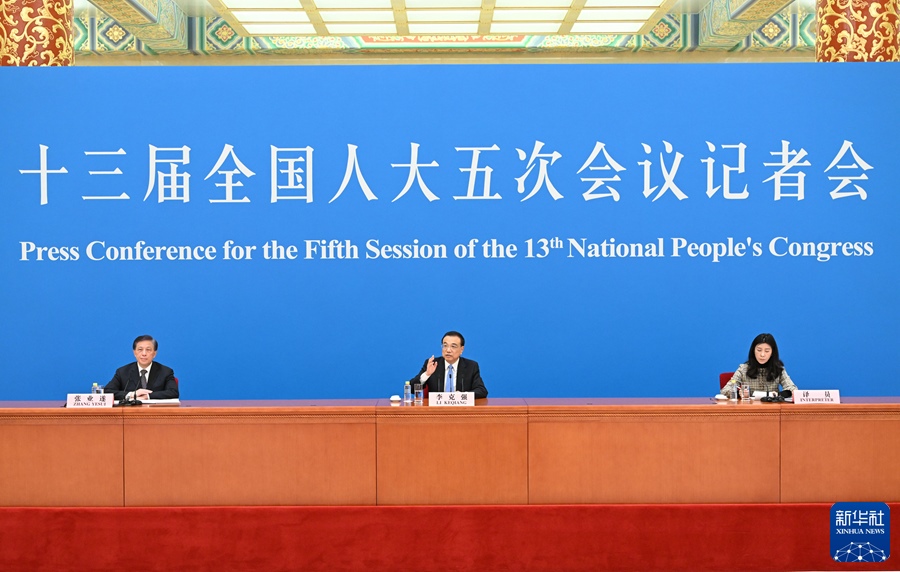 3月11日上午,十三屆全國(guó)人大五次會(huì)議在北京人民大會(huì)堂舉行記者會(huì),國(guó)務(wù)院總理李克強(qiáng)應(yīng)大會(huì)發(fā)言人張業(yè)遂的邀請(qǐng)出席記者會(huì),并回答中外記者提問。新華社記者 李鑫 攝