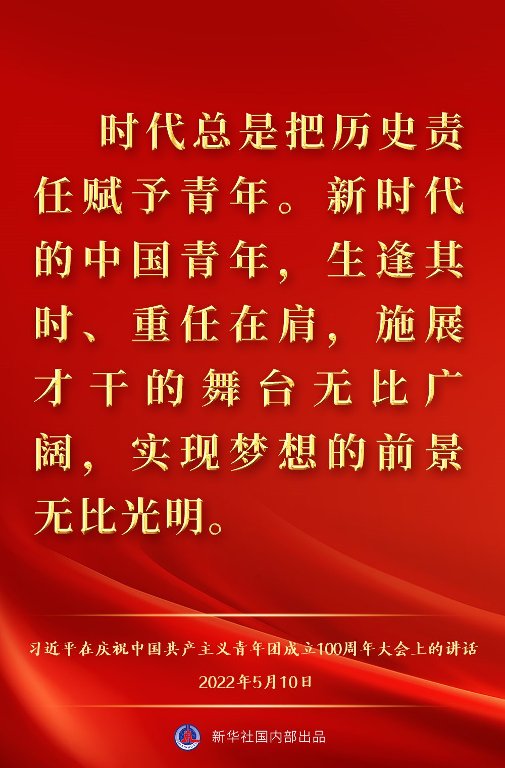 5月10日上午,中共中央總書(shū)記、國(guó)家主席、中央軍委主席習(xí)近平出席慶祝中國(guó)共產(chǎn)主義青年團(tuán)成立100周年大會(huì)并發(fā)表重要講話,一起來(lái)看金句。