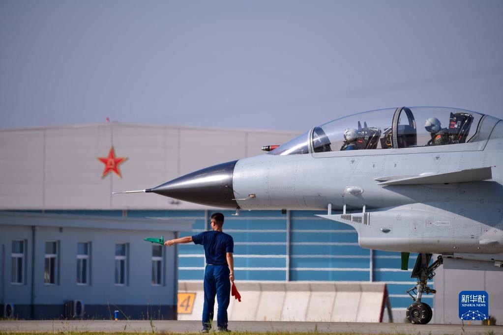 在空軍石家莊飛行學(xué)院某旅機場,空軍首批三代機飛行學(xué)員駕駛首批列裝空軍院校的殲-10戰(zhàn)機準備起飛(2021年9月10日攝)。新華社發(fā)(李敏攝)