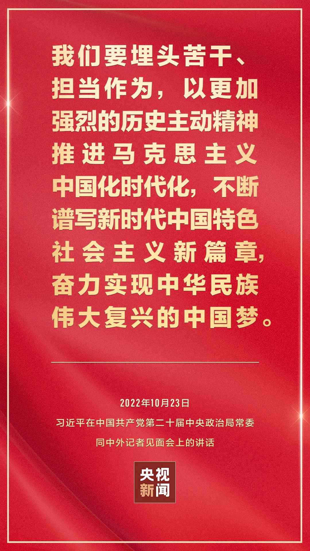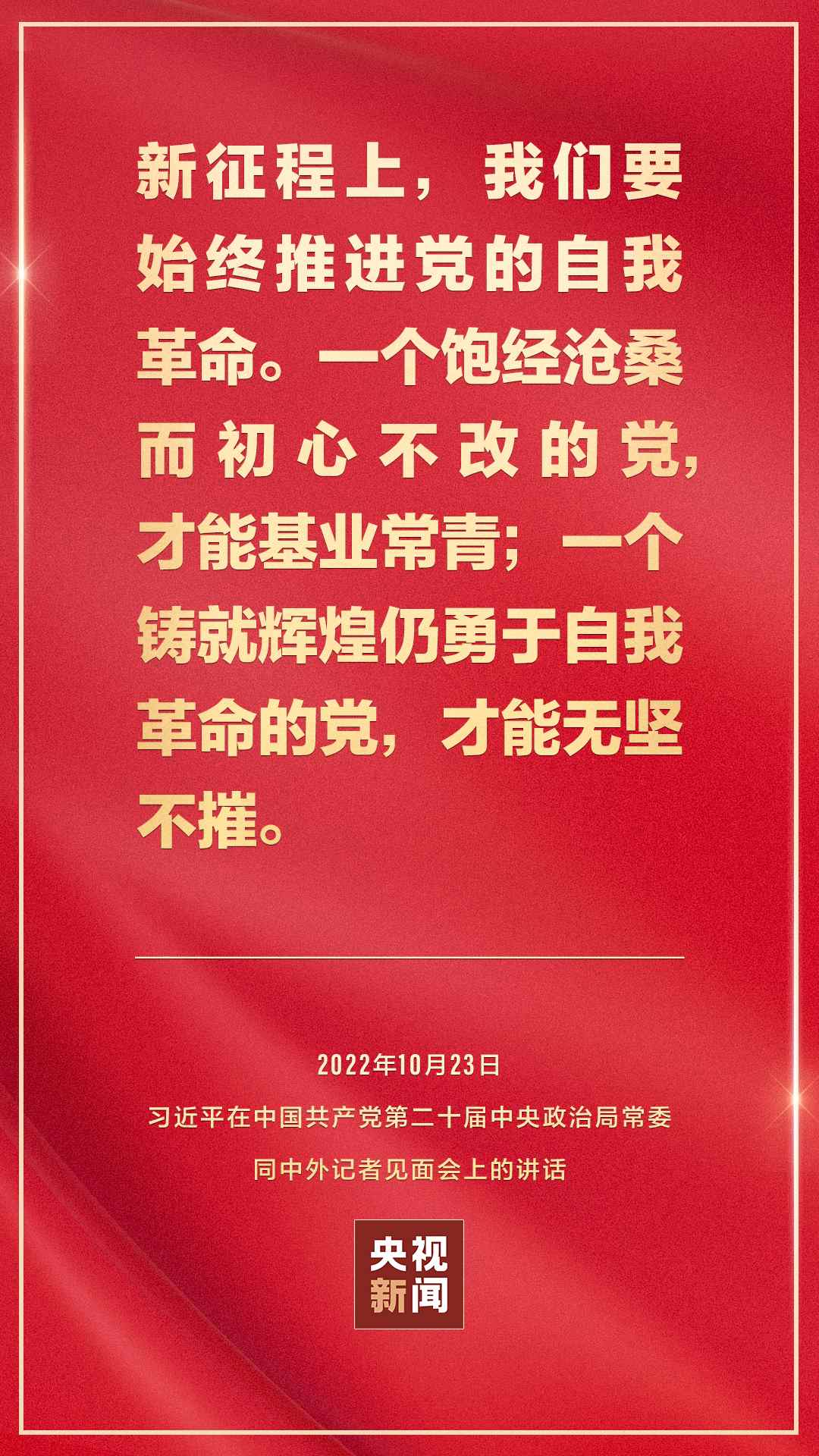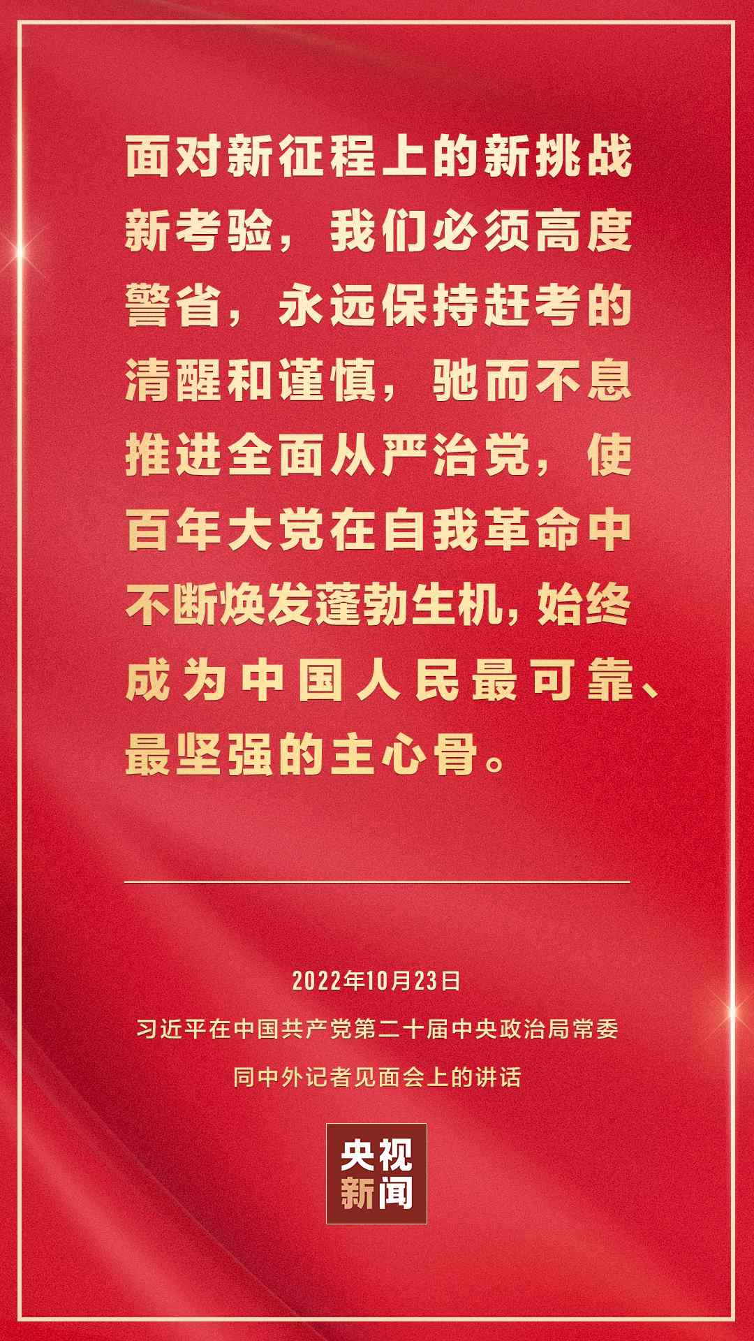 在中國共產(chǎn)黨第二十屆中央委員會第一次全體會議上當(dāng)選的中共中央總書記習(xí)近平和中共中央政治局常委李強、趙樂際、王滬寧、蔡奇、丁薛祥、李希,23日中午在人民大會堂同采訪中共二十大的中外記者見面。習(xí)近平發(fā)表重要講話。