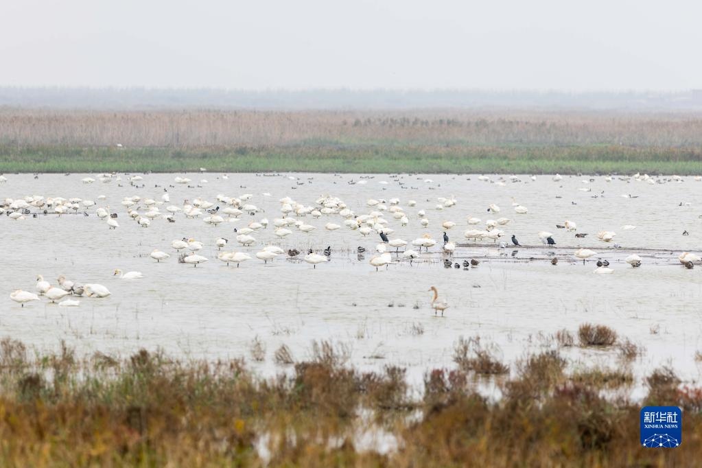 這是11月22日在上海崇明東灘鳥類國家級自然保護(hù)區(qū)拍攝的棲息的各種鳥類。新華社記者 王翔 攝