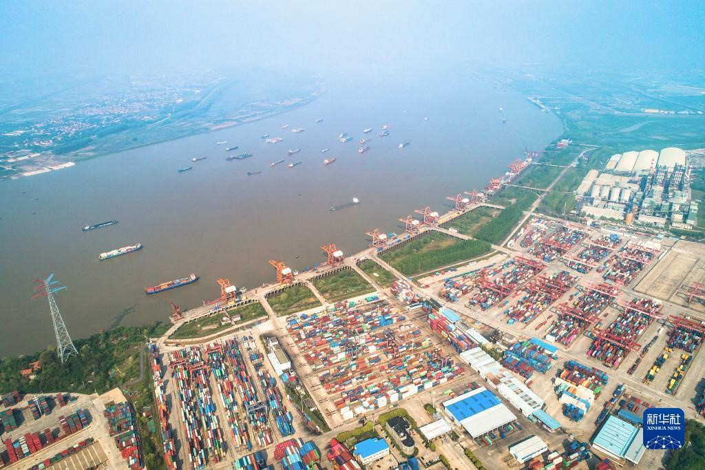 這是武漢長江中游航運中心核心港陽邏港(2020年4月12日攝,無人機(jī)照片)。新華社記者 肖藝九 攝
