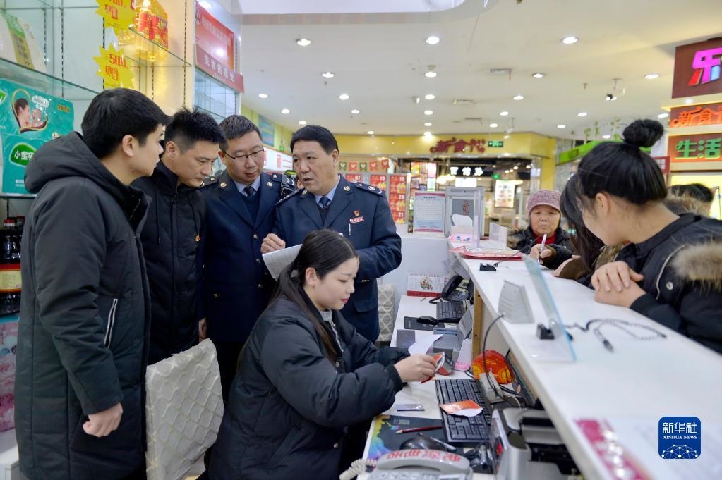 河北寧晉縣紀(jì)檢干部與稅務(wù)稽查人員在當(dāng)?shù)匾患页袡z查是否有單位公款購(gòu)買(mǎi)購(gòu)物卡情況(2018年12月29日攝)。新華社記者 牟宇 攝