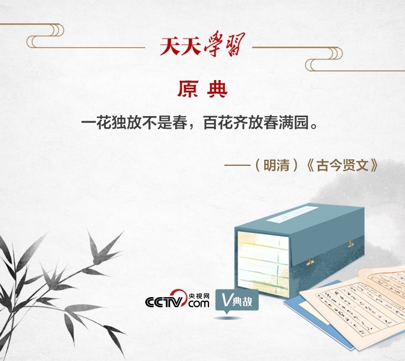 “一花獨(dú)放不是春,百花齊放春滿園”,意思是,一枝單獨(dú)開放的花朵不能代表春天的到來,只有百花競艷才是人間春色。這句民諺之所以廣為流傳,是因?yàn)轱柡羁陶芾恚阂弧㈥U述了整體和部分的辯證關(guān)系,“一花”是部分,“百花”是整體,部分的功能是較小的,要以整體發(fā)展帶動(dòng)部分發(fā)展;二、體現(xiàn)了聯(lián)系的觀點(diǎn),聯(lián)系具有普遍性,“一花”和“百花”是相互聯(lián)系的,因此要尊重文化的多樣性;三、說明了事物是客觀的和發(fā)展變化的,“百花齊放”是必然的,因此要順應(yīng)歷史潮流。
