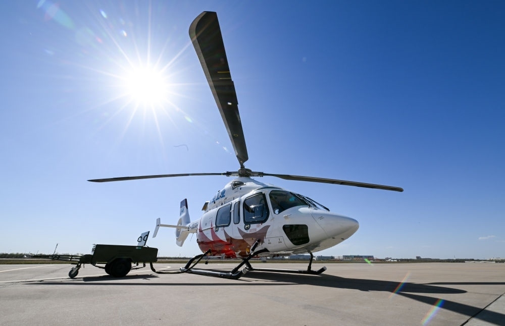 這是2023年4月7日在航空工業(yè)天津直升機有限責任公司停機坪拍攝的“吉祥鳥”AC332直升機。新華社記者 孫凡越 攝