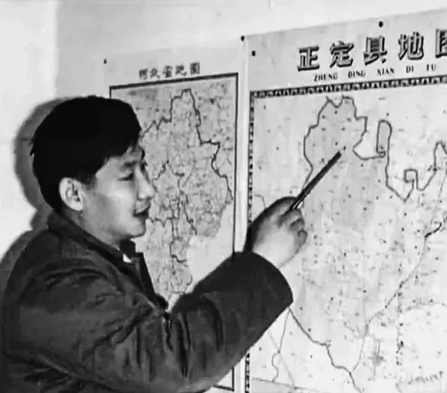 習(xí)近平在辦公室地圖前謀劃正定的發(fā)展。(圖源:《讓群眾過上好日子——習(xí)近平正定足跡》)
