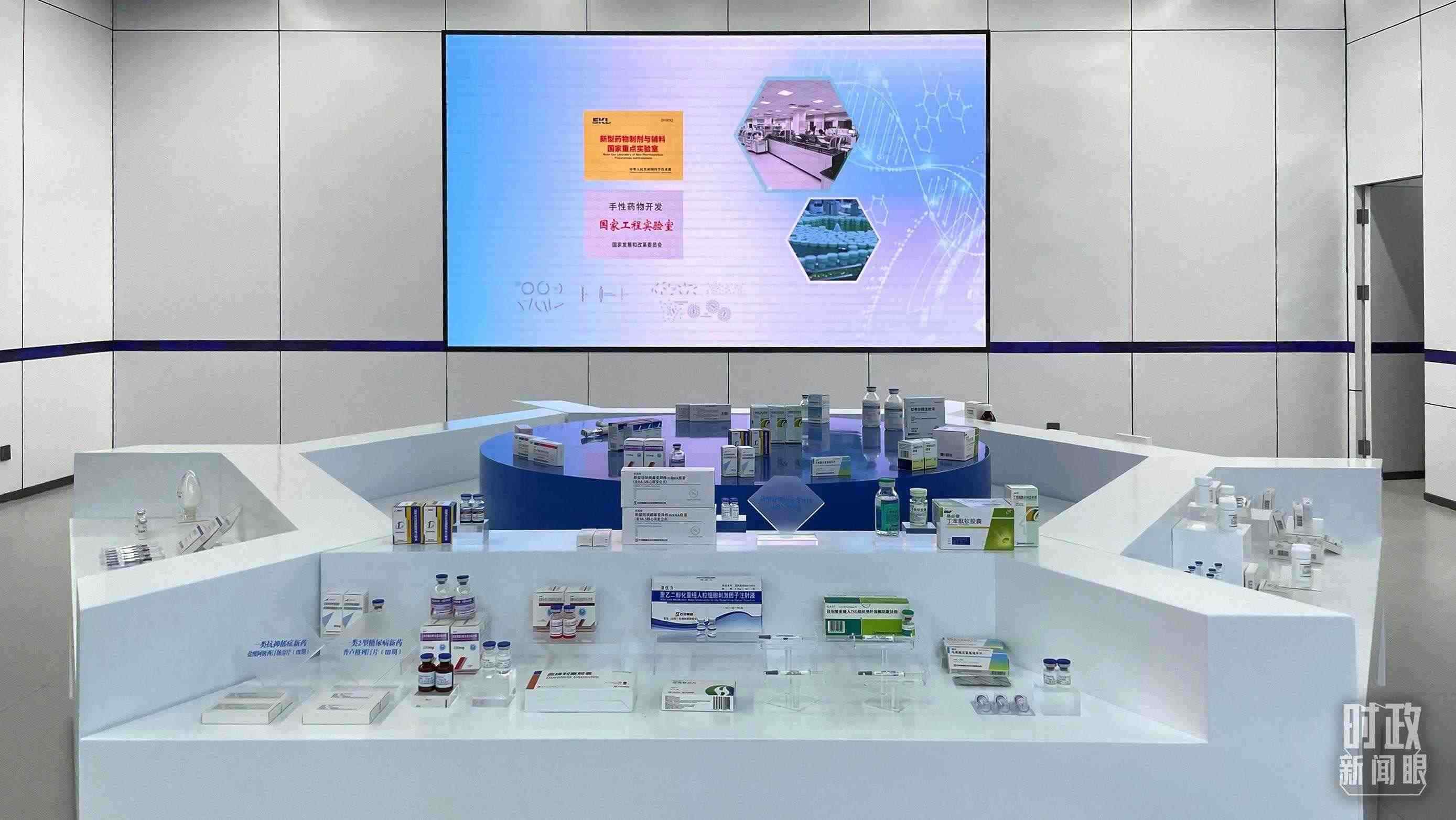 △石家莊國(guó)際生物醫(yī)藥園規(guī)劃展館內(nèi)展示企業(yè)研發(fā)生產(chǎn)的藥品。(總臺(tái)央視記者蔣碩拍攝)