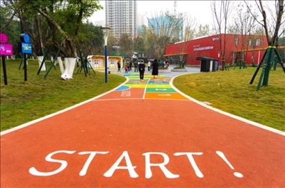 △重慶兩江新區(qū)生活垃圾分類主題公園分類知識通關步道。該形式在寓教于樂中推廣垃圾分類知識。