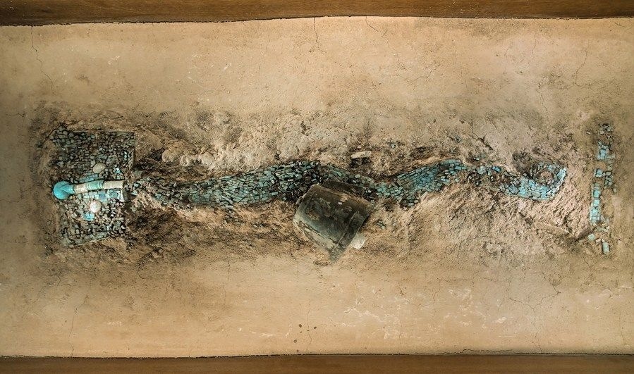 這是中國(guó)考古博物館展出的綠松石龍形器。
