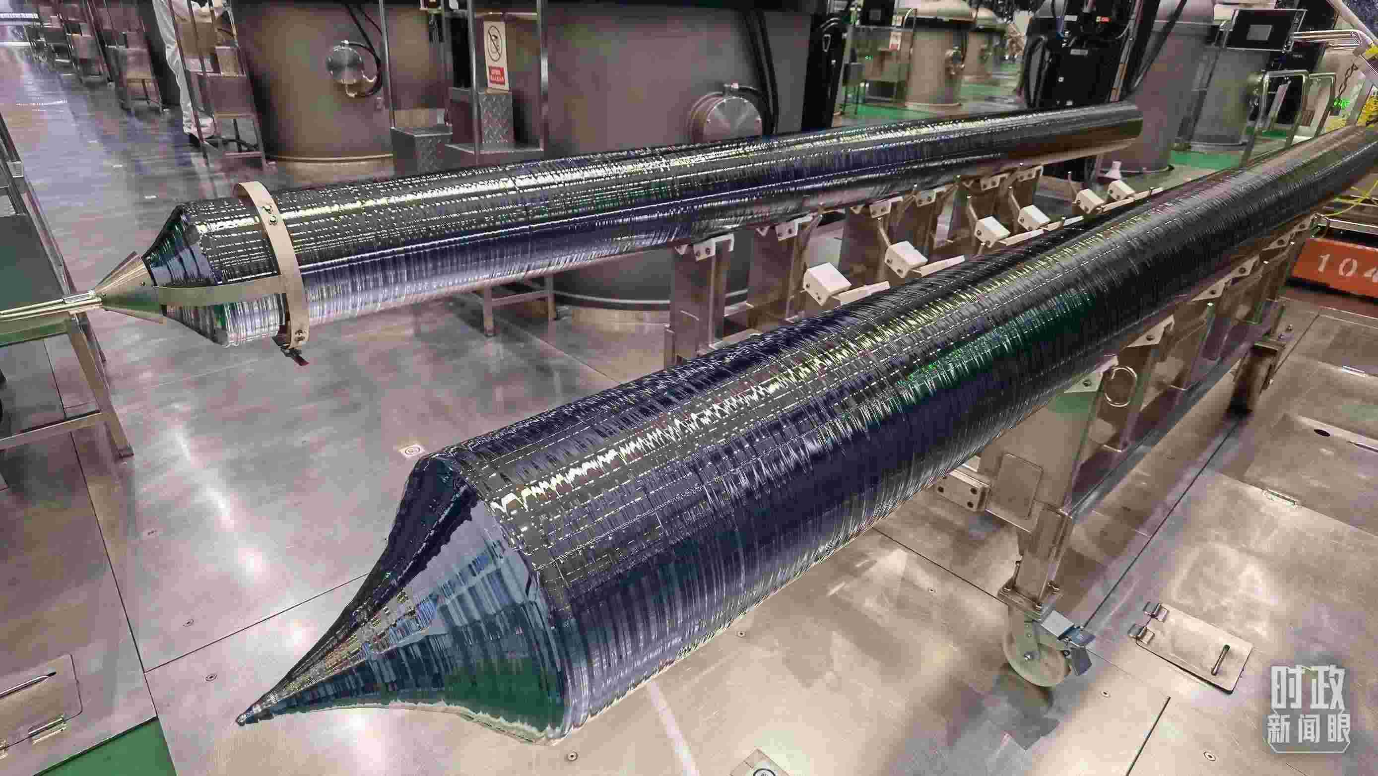 △園區(qū)企業(yè)生產的光伏單晶硅棒。(總臺央視記者石丞拍攝)