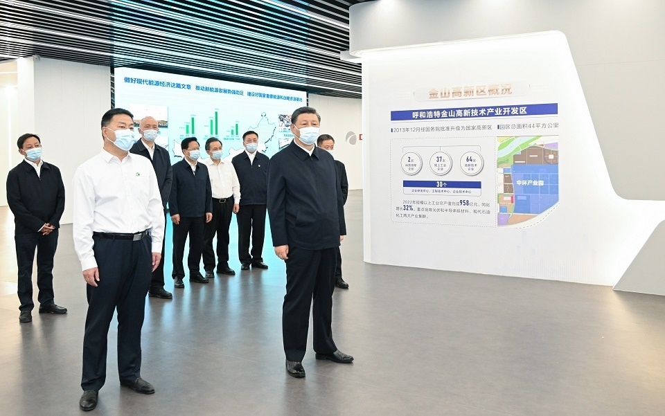 6月7日至8日,中共中央總書記、國(guó)家主席、中央軍委主席習(xí)近平在內(nèi)蒙古考察。這是7日下午,習(xí)近平在呼和浩特中環(huán)產(chǎn)業(yè)園考察。