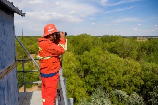 6月5日,臨河區(qū)國營新華林場(chǎng)護(hù)林員在開展巡護(hù)工作。新華社記者 李志鵬 攝
