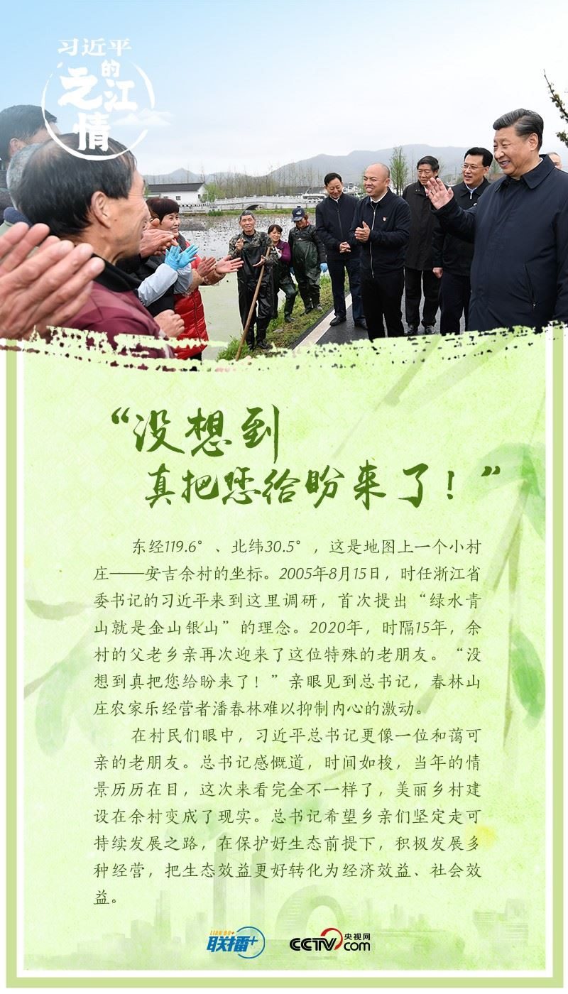 一步一履總關(guān)情。總書記曾在浙江工作6個(gè)年頭,熟悉這里的山水草木、風(fēng)土人情。他曾說(shuō):“這里秀美的山水,這里勤勞的人民,這里悠久的文化,給我留下了難以忘懷的印象?!?/p>