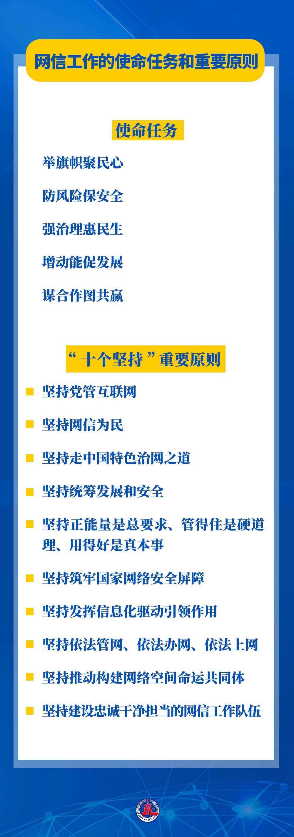 習(xí)近平總書記鮮明提出的網(wǎng)信工作“5個(gè)方面、30個(gè)字”的使命任務(wù),涵蓋互聯(lián)網(wǎng)內(nèi)容建設(shè)、網(wǎng)絡(luò)安全、網(wǎng)絡(luò)惠民、信息化建設(shè)、國(guó)際網(wǎng)絡(luò)空間治理等,“十個(gè)堅(jiān)持”重要原則進(jìn)一步豐富和發(fā)展了習(xí)近平總書記關(guān)于網(wǎng)絡(luò)強(qiáng)國(guó)的重要思想,把黨對(duì)網(wǎng)信工作的規(guī)律性認(rèn)識(shí)提升到全新高度。總書記提出的使命任務(wù)和重要原則,具有很強(qiáng)的政治性、戰(zhàn)略性、指導(dǎo)性,既著眼當(dāng)前,又謀深慮遠(yuǎn),為做好新時(shí)代新征程網(wǎng)信工作指明了前進(jìn)方向,為推進(jìn)實(shí)現(xiàn)網(wǎng)絡(luò)強(qiáng)國(guó)提供了根本遵循。