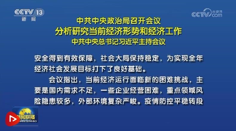 7月24日,中共中央政治局召開會(huì)議,分析研究當(dāng)前經(jīng)濟(jì)形勢,部署下半年經(jīng)濟(jì)工作。習(xí)近平總書記主持會(huì)議。