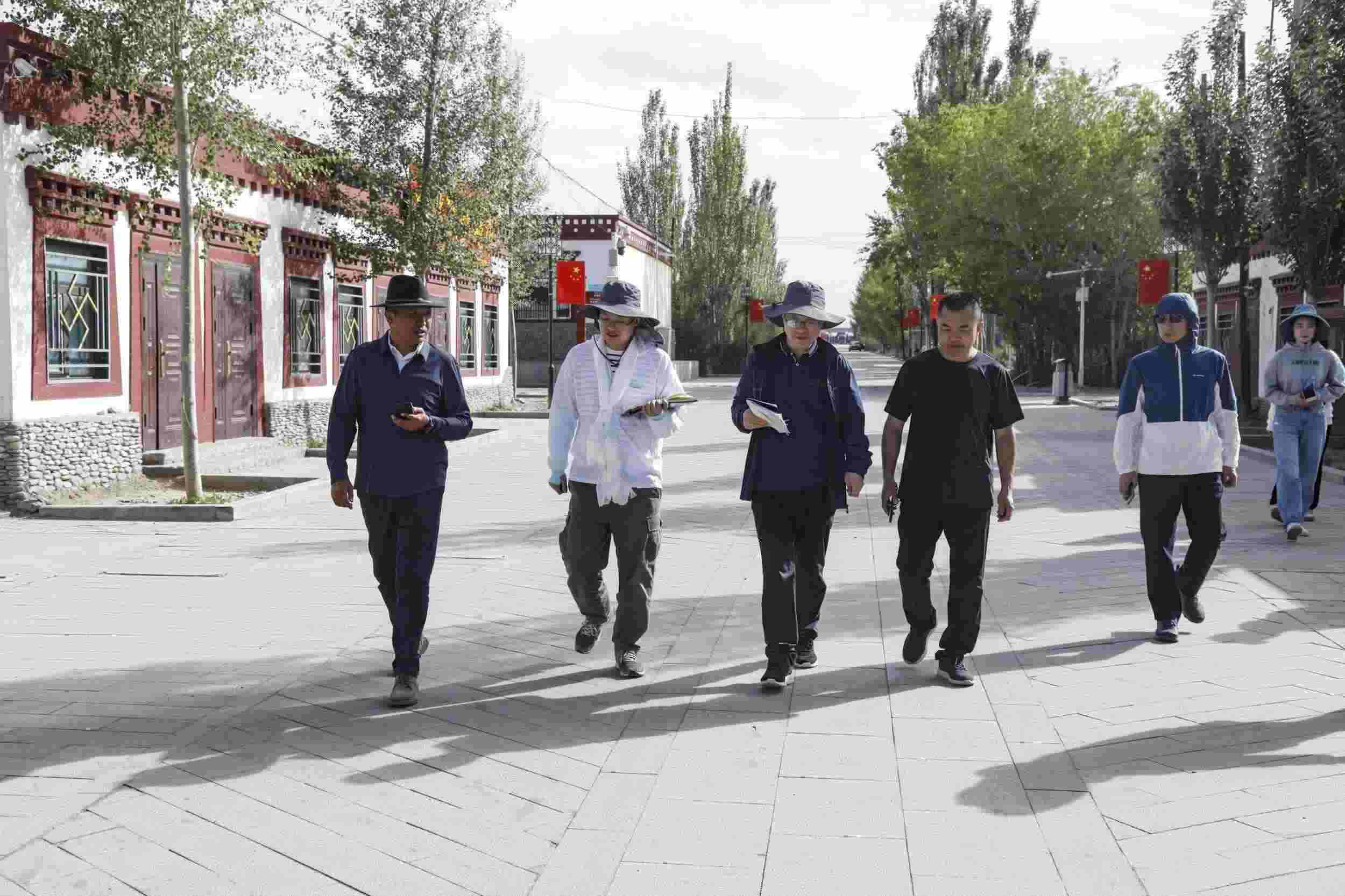 2023年7月22日,格爾木市長江源民族學(xué)校校長李軍(左三)講解該校以生態(tài)文明為特色的校園文化。王箏 攝