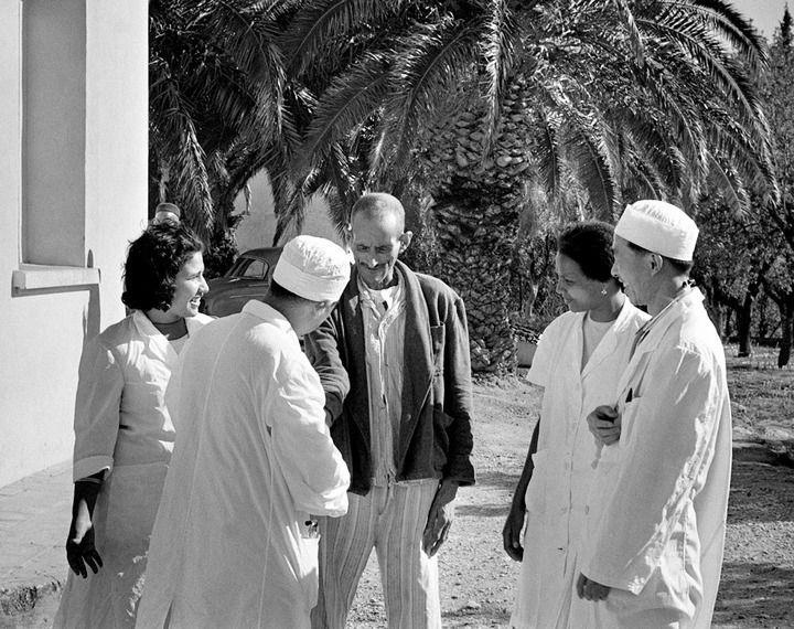 △1966年12月,一名阿爾及利亞老人向中國援非醫(yī)療隊(duì)醫(yī)生表達(dá)自己病況好轉(zhuǎn)的愉快心情。