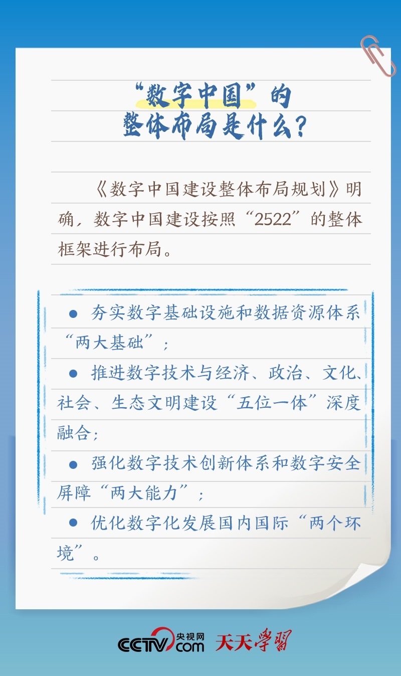 當(dāng)今世界,信息技術(shù)創(chuàng)新日新月異,數(shù)字化、網(wǎng)絡(luò)化、智能化深入發(fā)展。黨的十八大以來,習(xí)近平總書記曾多次明確強(qiáng)調(diào)推進(jìn)“數(shù)字中國”建設(shè)。什么是“數(shù)字中國”?怎樣建設(shè)“數(shù)字中國”?央視網(wǎng)《天天學(xué)習(xí)》特整理學(xué)習(xí)筆記,與您一起學(xué)習(xí)。