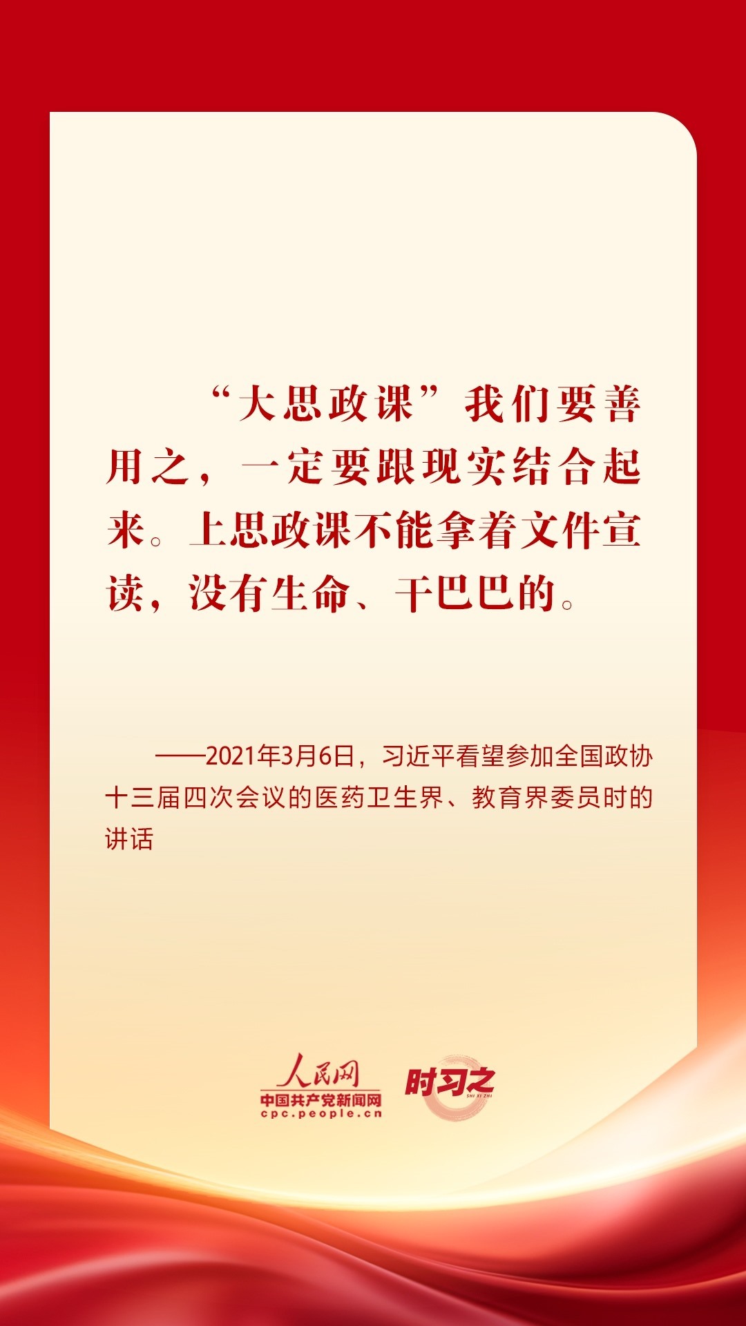 “思政課是落實立德樹人根本任務的關鍵課程,思政課作用不可替代,思政課教師隊伍責任重大?!秉h的十八大以來,從召開全國高校思想政治工作會議、全國教育大會、學校思想政治理論課教師座談會,到多次赴學??疾旌蛶熒涣髡勑?,習近平總書記圍繞思政課建設作出一系列重要論述,為辦好思政課提供根本遵循。