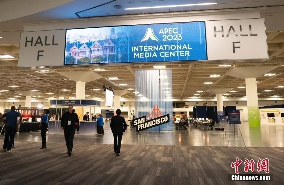 當?shù)貢r間11月12日,各國記者在美國加州舊金山2023APEC會議國際媒體中心工作。中新社記者劉關關 攝