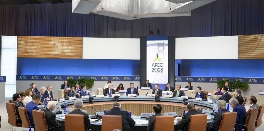 當(dāng)?shù)貢r(shí)間11月17日上午,亞太經(jīng)合組織第三十次領(lǐng)導(dǎo)人非正式會(huì)議在美國(guó)舊金山莫斯科尼中心舉行。國(guó)家主席習(xí)近平出席會(huì)議并發(fā)表題為《堅(jiān)守初心 團(tuán)結(jié)合作 攜手共促亞太高質(zhì)量增長(zhǎng)》的重要講話。新華社記者 李學(xué)仁 攝