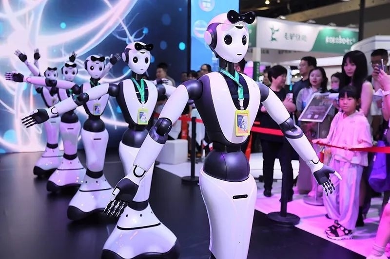 △2023年7月6日,2023世界人工智能大會(huì)上,人形機(jī)器人進(jìn)行“千手觀音”表演。