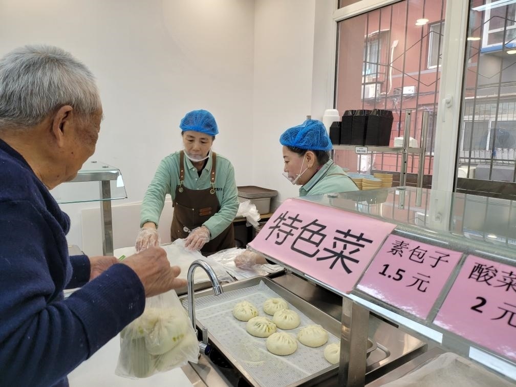 臨近中午,遼寧省沈陽市大東區(qū)東勝社區(qū)網(wǎng)格員在群中發(fā)布了“今日菜譜”:燒排骨、燒茄子、雪里紅燉豆腐……88歲的居民唐孝周來到社區(qū)開辦的惠民食堂,購(gòu)買了一菜一飯,和鄰居邊聊邊吃。