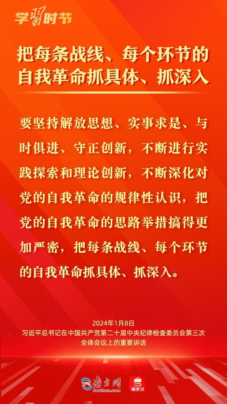 1月8日,中共中央總書記、國家主席、中央軍委主席習近平在中國共產(chǎn)黨第二十屆中央紀律檢查委員會第三次全體會議上發(fā)表重要講話,深刻闡述黨的自我革命的重要思想,對持續(xù)發(fā)力、縱深推進反腐敗斗爭作出戰(zhàn)略部署。