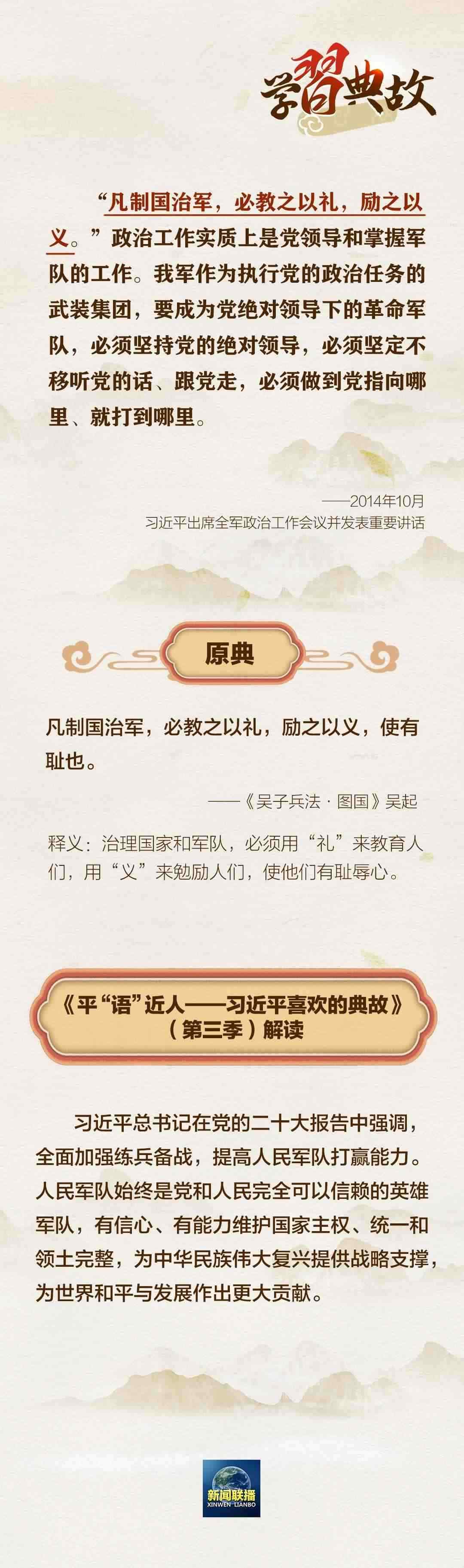 在黨的二十大報告中,習近平總書記強調,“如期實現(xiàn)建軍一百年奮斗目標,加快把人民軍隊建成世界一流軍隊,是全面建設社會主義現(xiàn)代化國家的戰(zhàn)略要求?!眹@“強軍之路”這一主題,總書記曾講到哪些典故?一起學習↓↓↓