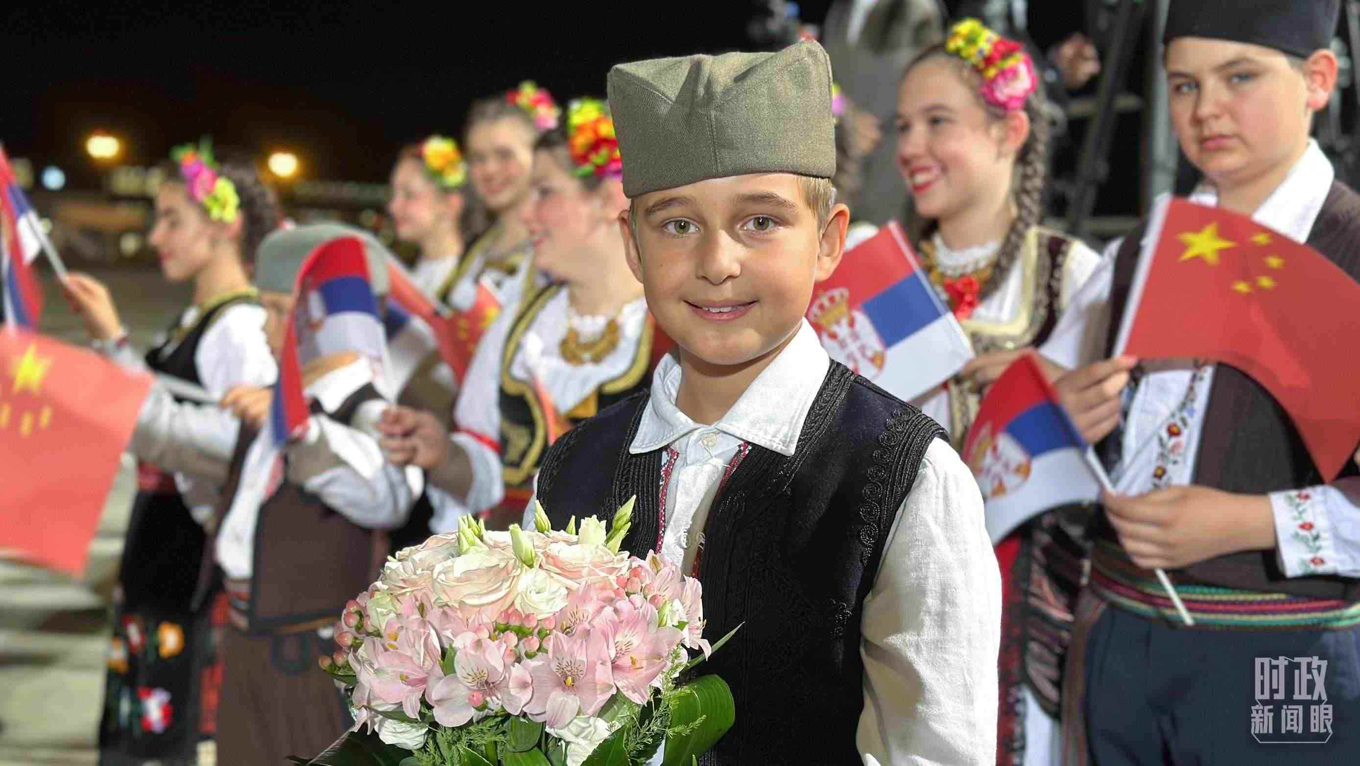△機場迎接習(xí)主席的塞爾維亞少年。(總臺央視記者范一鳴拍攝)