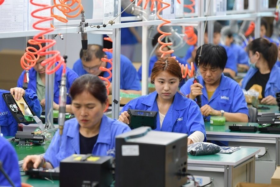 2024年5月22日,在位于日照市東港區(qū)新舊動(dòng)能轉(zhuǎn)換示范基地的山東比特智能科技股份有限公司新廠區(qū),工人在車間內(nèi)工作。新華社記者 孟濤 攝