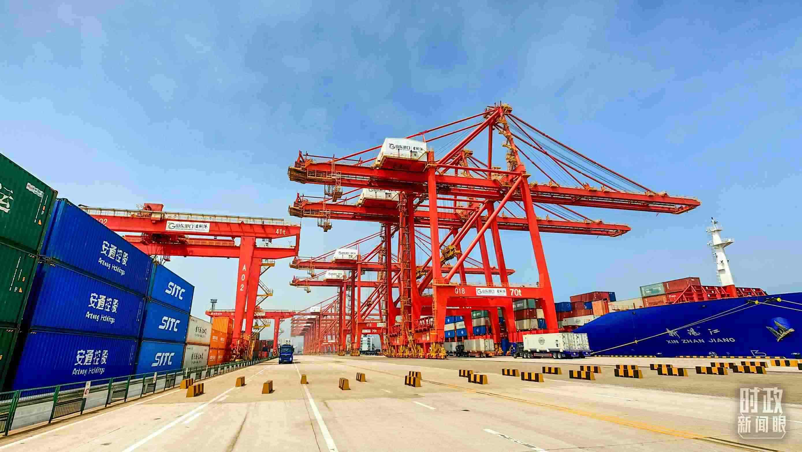 這里不僅是國(guó)家支持建設(shè)的大宗干散貨智慧綠色示范港口,還建成全球首個(gè)順岸開(kāi)放式全自動(dòng)化集裝箱碼頭,單機(jī)效率提升50%,每年可削減碳排放9000多噸。