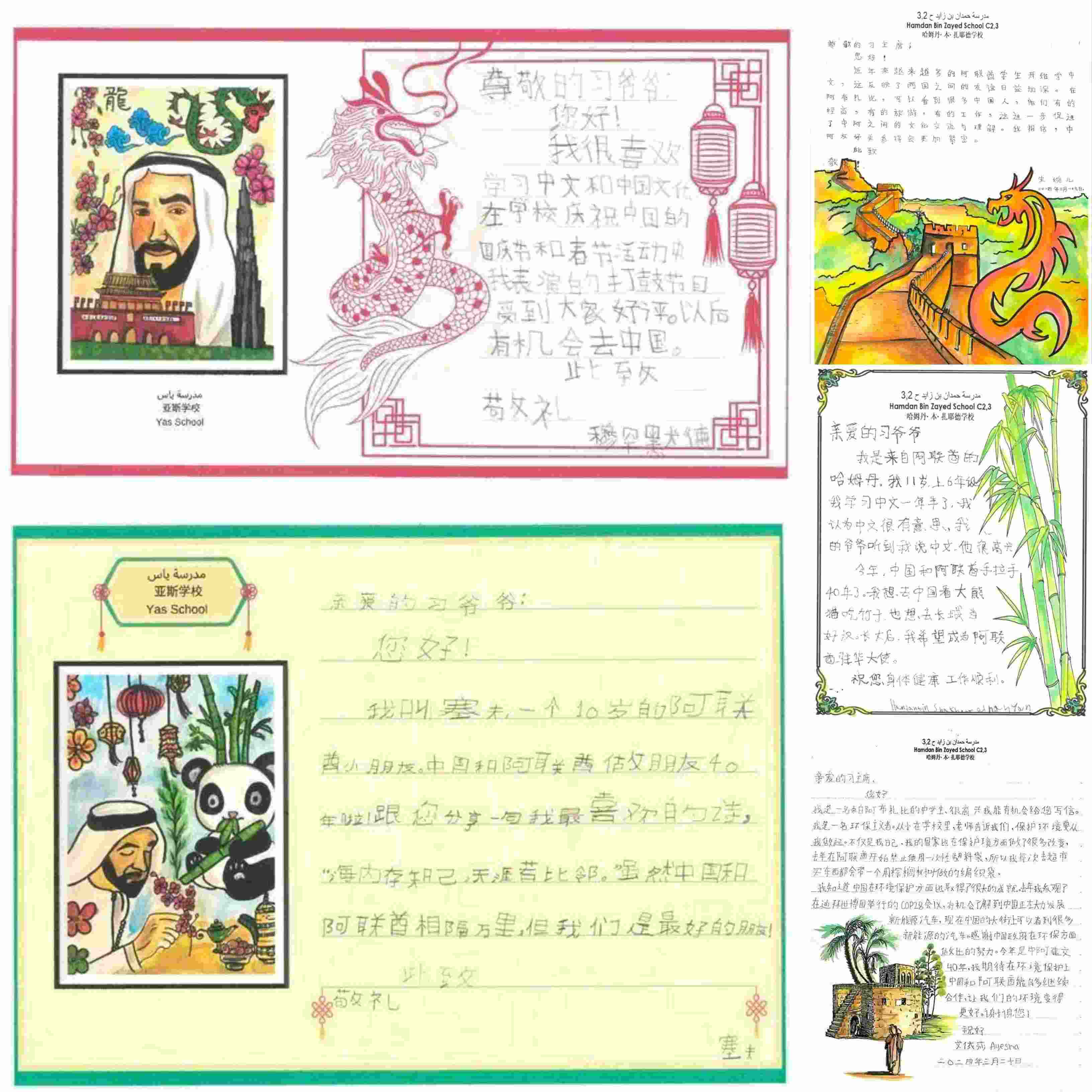 “我讀了你們每個(gè)人的信,從字里行間、畫里畫外感受到了大家對(duì)中國(guó)文化的熱愛,對(duì)兩國(guó)友好的期盼?!苯眨?xí)近平主席在給他們的復(fù)信中說,“5年前,我同穆罕默德總統(tǒng)共同啟動(dòng)阿聯(lián)酋中文教學(xué)‘百校項(xiàng)目’,如今看到‘學(xué)中文’在阿聯(lián)酋已經(jīng)成為一種新風(fēng)尚,培養(yǎng)了一批像你們這樣的中阿交流小使者,我很欣慰?!?/p>