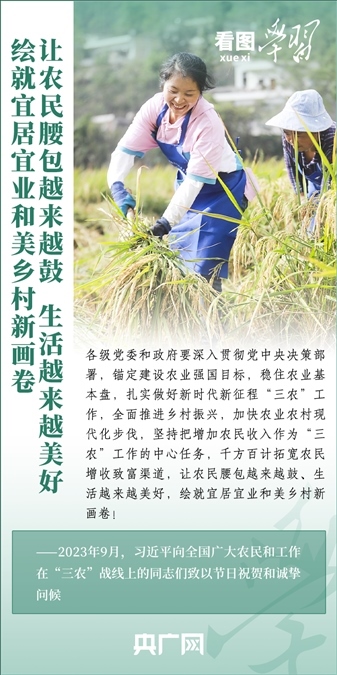 民族要復(fù)興,鄉(xiāng)村必振興。黨的十八大以來,每到各地考察調(diào)研,習(xí)近平總書記總會去農(nóng)村看一看,走進田間地頭,和農(nóng)民拉拉家常。總書記強調(diào),“建設(shè)宜居宜業(yè)和美鄉(xiāng)村是農(nóng)業(yè)強國的應(yīng)有之義”,“要讓農(nóng)民腰包越來越鼓、生活越來越美好”。