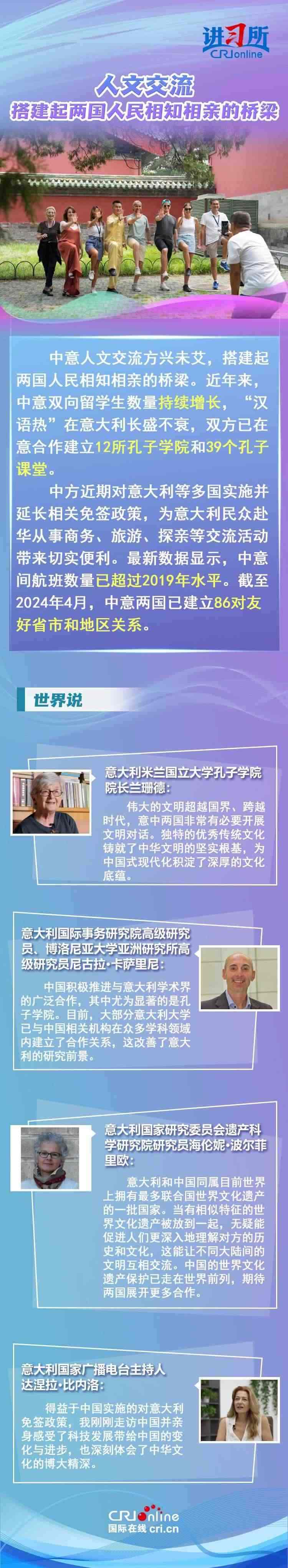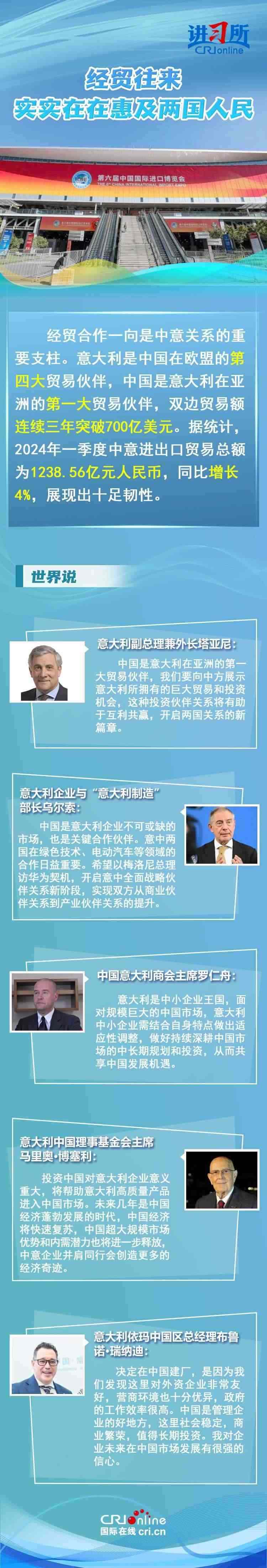 梅洛尼表示,中國對意大利而言是一個(gè)極為重要的經(jīng)貿(mào)和文化合作伙伴。意大利各界人士認(rèn)為,中意并肩同行會(huì)創(chuàng)造更多的經(jīng)濟(jì)奇跡,同時(shí)兩國非常有必要開展文明對話,期待未來兩國展開更多領(lǐng)域合作,開啟全面戰(zhàn)略伙伴關(guān)系新階段。
