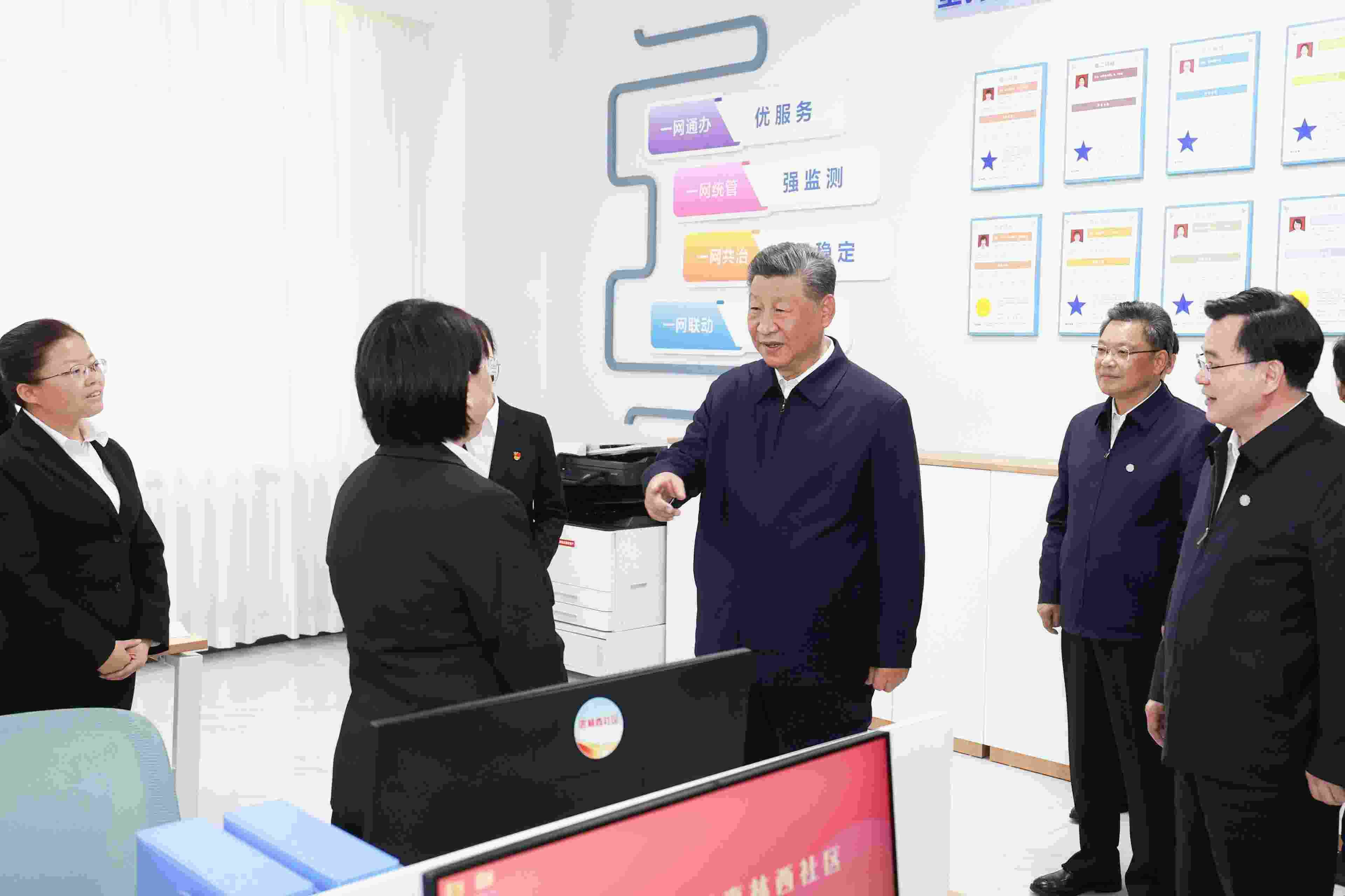 學(xué)院的電子屏幕上,展示了該校畢業(yè)生去向落實(shí)率的柱狀圖,總書(shū)記仔細(xì)察看,反復(fù)詢問(wèn)具體數(shù)據(jù)。