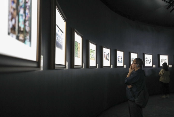 2024年9月26日,觀眾在北京參觀“國(guó)社之鏡·世紀(jì)光影”新華社新聞攝影展。新華社記者 杜瀟逸 攝