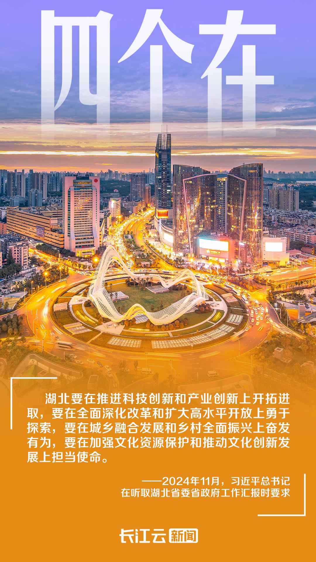 在新的歷史起點上,2025年,湖北將堅定不移沿著習近平總書記指引的方向,把全部工作向“支點建設”聚焦聚力,切實推動“支點建設”實現(xiàn)整體提升,努力把習近平總書記為湖北擘畫的宏偉藍圖變成美好現(xiàn)實。努力打造長江經(jīng)濟帶高質(zhì)量發(fā)展的關(guān)鍵節(jié)點和戰(zhàn)略樞紐,打造中部地區(qū)崛起的強勁增長極和重要動力源,打造中國式現(xiàn)代化的區(qū)域樣板和重要典范。