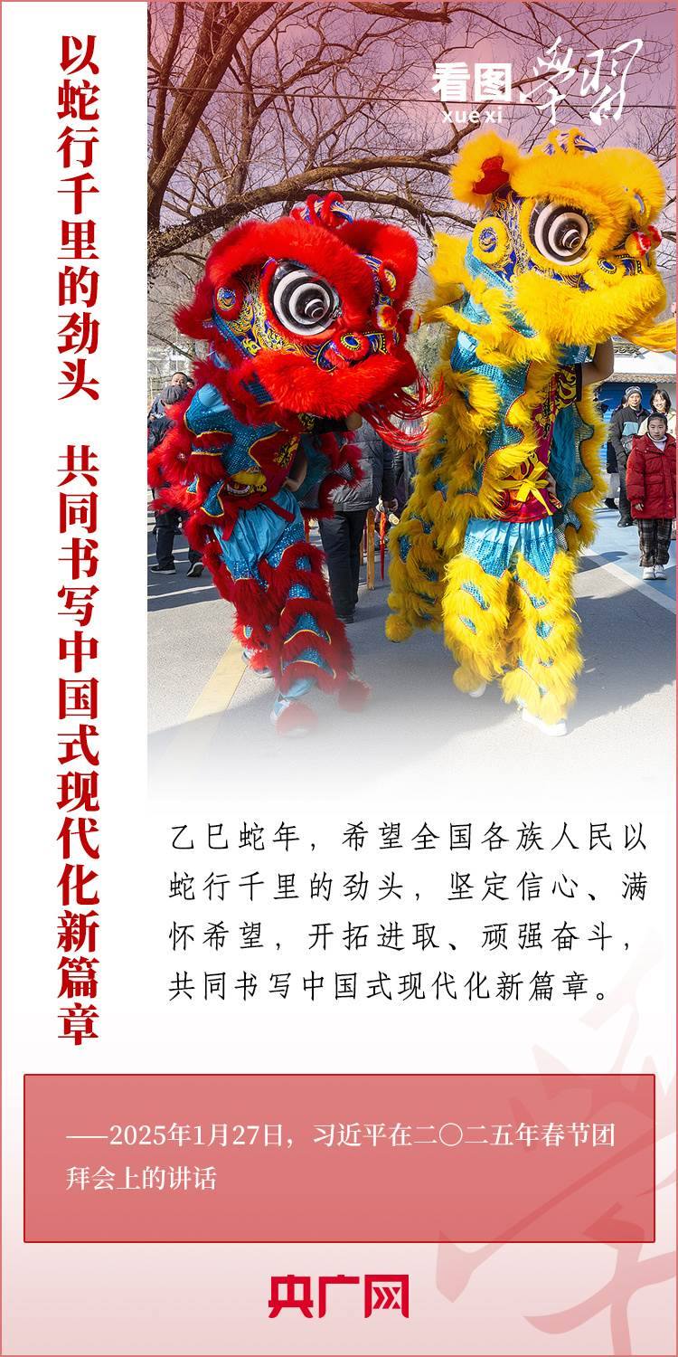 1月27日,中共中央、國務(wù)院在北京舉行春節(jié)團(tuán)拜會,習(xí)近平總書記發(fā)表熱情洋溢的講話,向全國各族人民、港澳臺同胞、海外僑胞拜年并致以新春祝福。總書記在講話中深情回顧過去一年中國式現(xiàn)代化取得很不平凡的發(fā)展歷程,“希望全國各族人民以蛇行千里的勁頭,堅(jiān)定信心、滿懷希望,開拓進(jìn)取、頑強(qiáng)奮斗,共同書寫中國式現(xiàn)代化新篇章。”一起來學(xué)習(xí)!