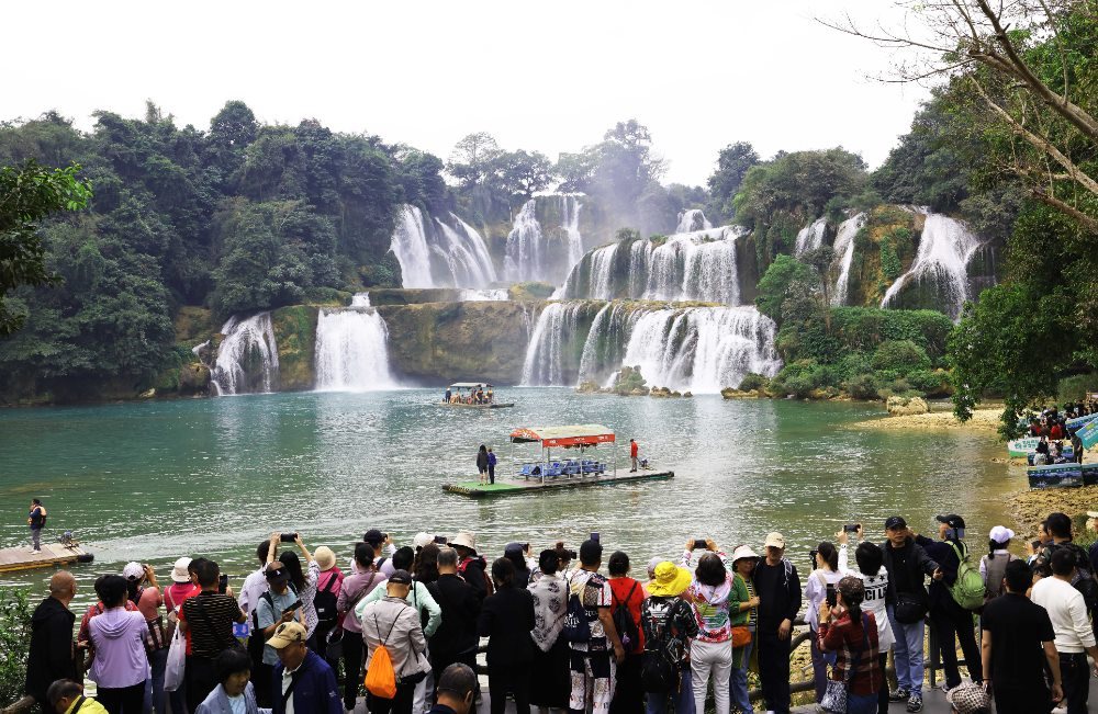 2024年12月5日,游客在中越德天(板約)瀑布跨境旅游合作區(qū)中國一側游覽。新華社記者 金皓原 攝