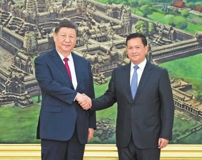 本報金邊4月17日電 (記者李婕、白元琪)4月17日晚,國家主席習近平同柬埔寨首相洪瑪奈在金邊和平大廈舉行會談。兩國領導人一致同意攜手構建新時代全天候中柬命運共同體,宣布2025年為“中柬旅游年”。