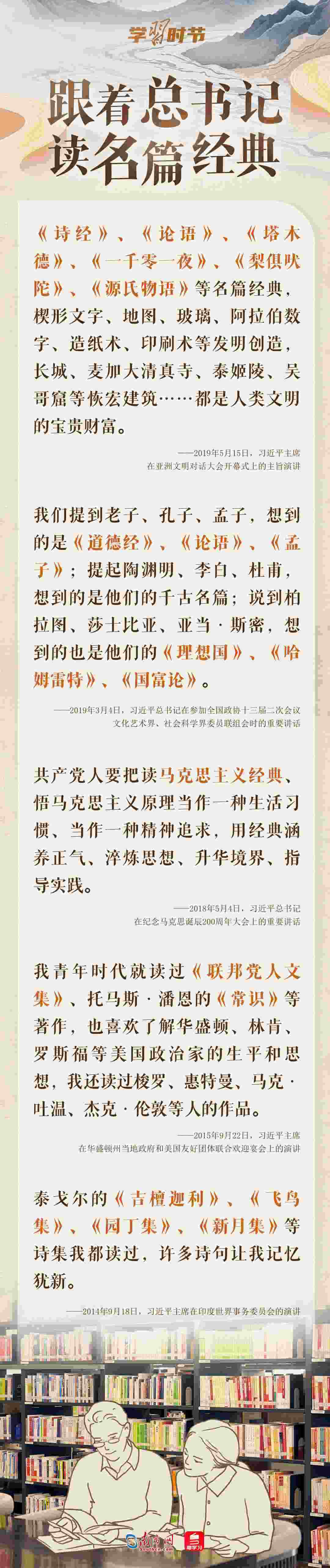 書籍是人類知識(shí)的載體,是人類智慧的結(jié)晶,是人類進(jìn)步的階梯。習(xí)近平總書記酷愛讀書,多次講述和書籍的不解之緣,分享讀書感悟。他說:“我愛好挺多,最大的愛好是讀書,讀書已成為我的一種生活方式?!?/p>