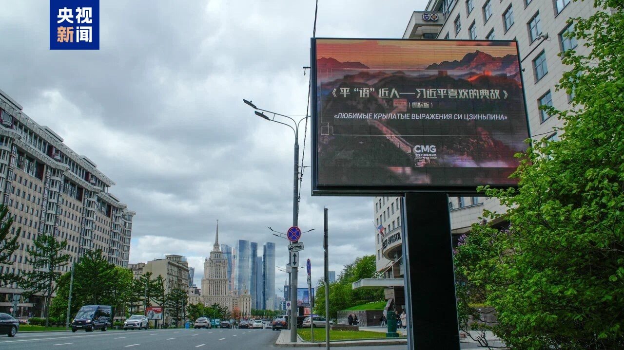 5月7日起,《平“語”近人——習(xí)近平喜歡的典故》(國際版)海報在莫斯科中央行政區(qū)的戶外大屏滾動播放。俄羅斯各界人士對節(jié)目落地播出表示期待,認(rèn)為這將為俄羅斯民眾更深入領(lǐng)略習(xí)近平主席治國理政智慧,感知中國文化的博大精深打開一扇思想之窗,為增進俄中友誼、推動雙方友好往來注入深厚持久的文化力量。