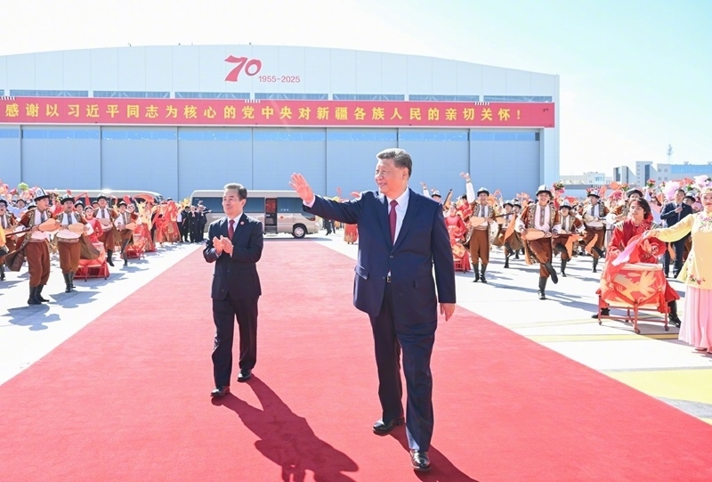 25日中午,習(xí)近平總書記在烏魯木齊出席新疆維吾爾自治區(qū)成立70周年慶祝活動后,乘專機返回北京。在烏魯木齊市區(qū)和機場,新疆各族群眾熱情歡送總書記。(文字記者:張曉松、朱基釵;攝影記者:謝環(huán)馳、申宏、李琰)