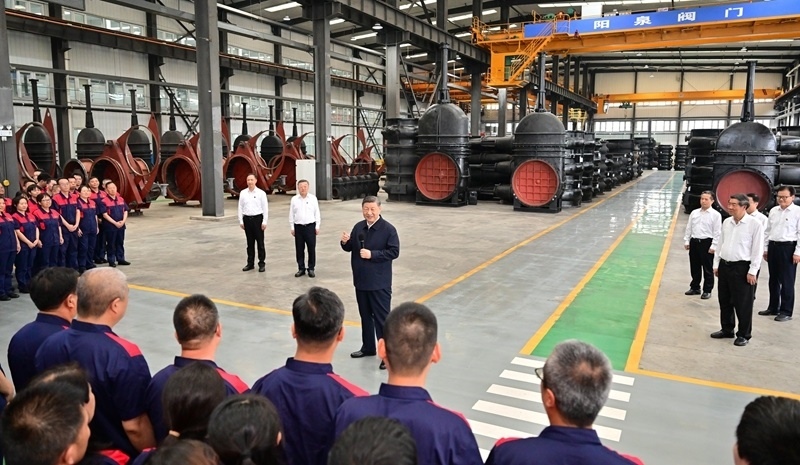 7月7日至8日,中共中央總書記、國家主席、中央軍委主席習(xí)近平在山西考察。這是7日下午,習(xí)近平在陽泉閥門股份有限公司考察。新華社記者 謝環(huán)馳 攝