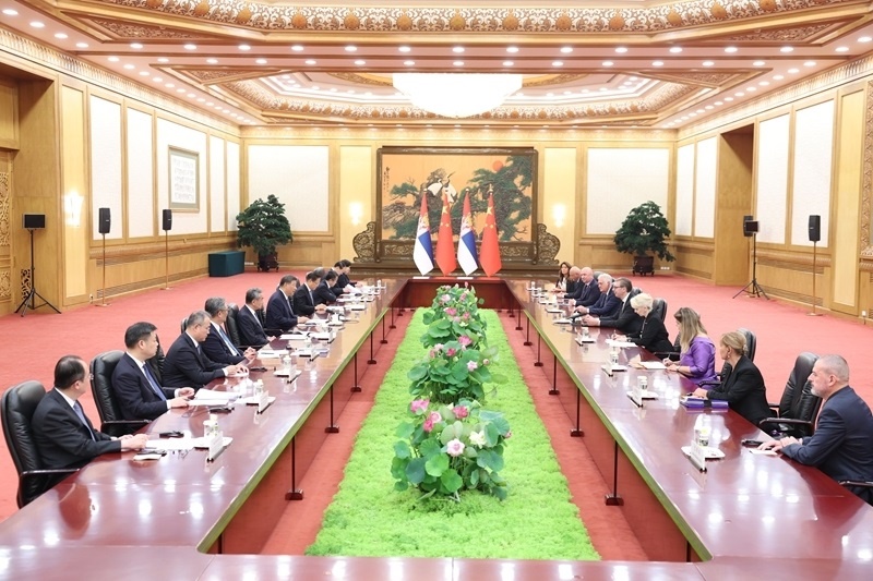 9月4日下午,國(guó)家主席習(xí)近平在北京人民大會(huì)堂會(huì)見來華出席紀(jì)念中國(guó)人民抗日戰(zhàn)爭(zhēng)暨世界反法西斯戰(zhàn)爭(zhēng)勝利80周年活動(dòng)的塞爾維亞總統(tǒng)武契奇。新華社記者 丁林 攝