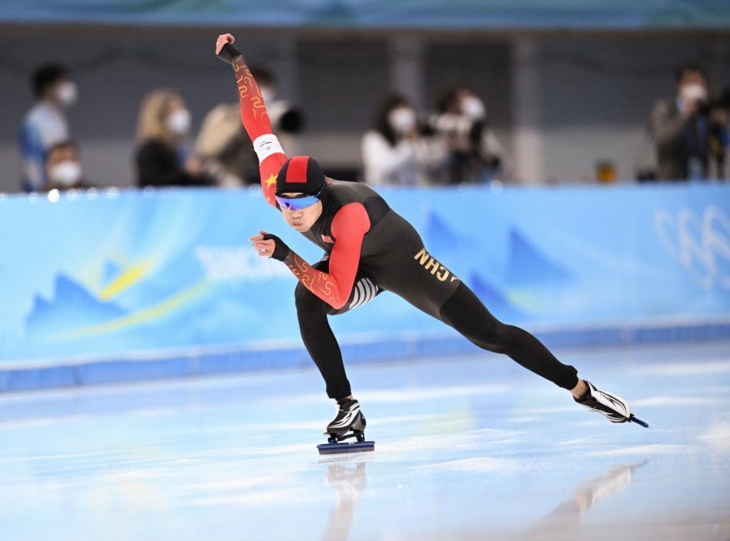 2月12日,中國(guó)選手高亭宇在比賽中。新華社記者武巍攝