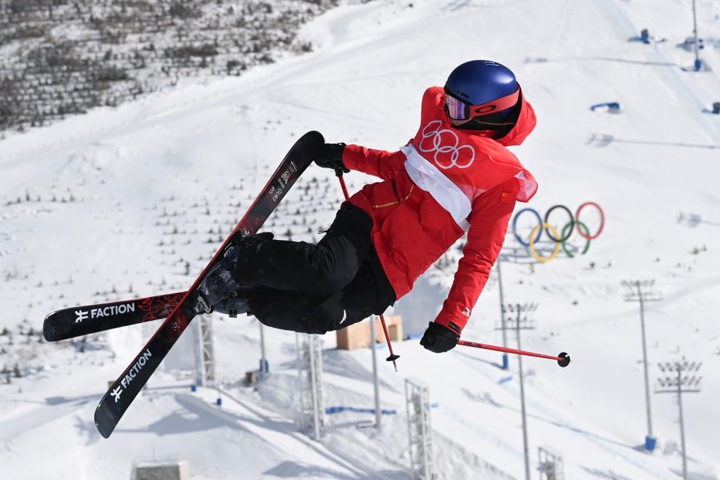 2月16日,中國隊(duì)選手齊廣璞在自由式滑雪男子空中技巧決賽中。新華社記者朱崢攝