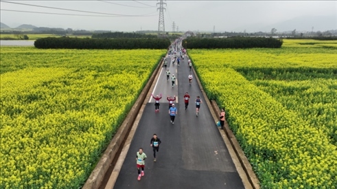 來自海內外的1萬余名專業(yè)運動員和馬拉松愛好者在云南羅平縣的花海中奔跑。何新文攝