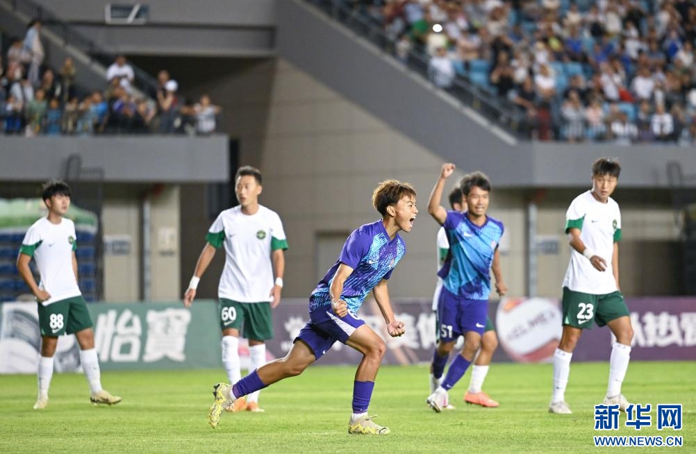??6月15日,浙江俱樂部U21隊球員王鈺棟(前)在比賽中慶祝進(jìn)球。
